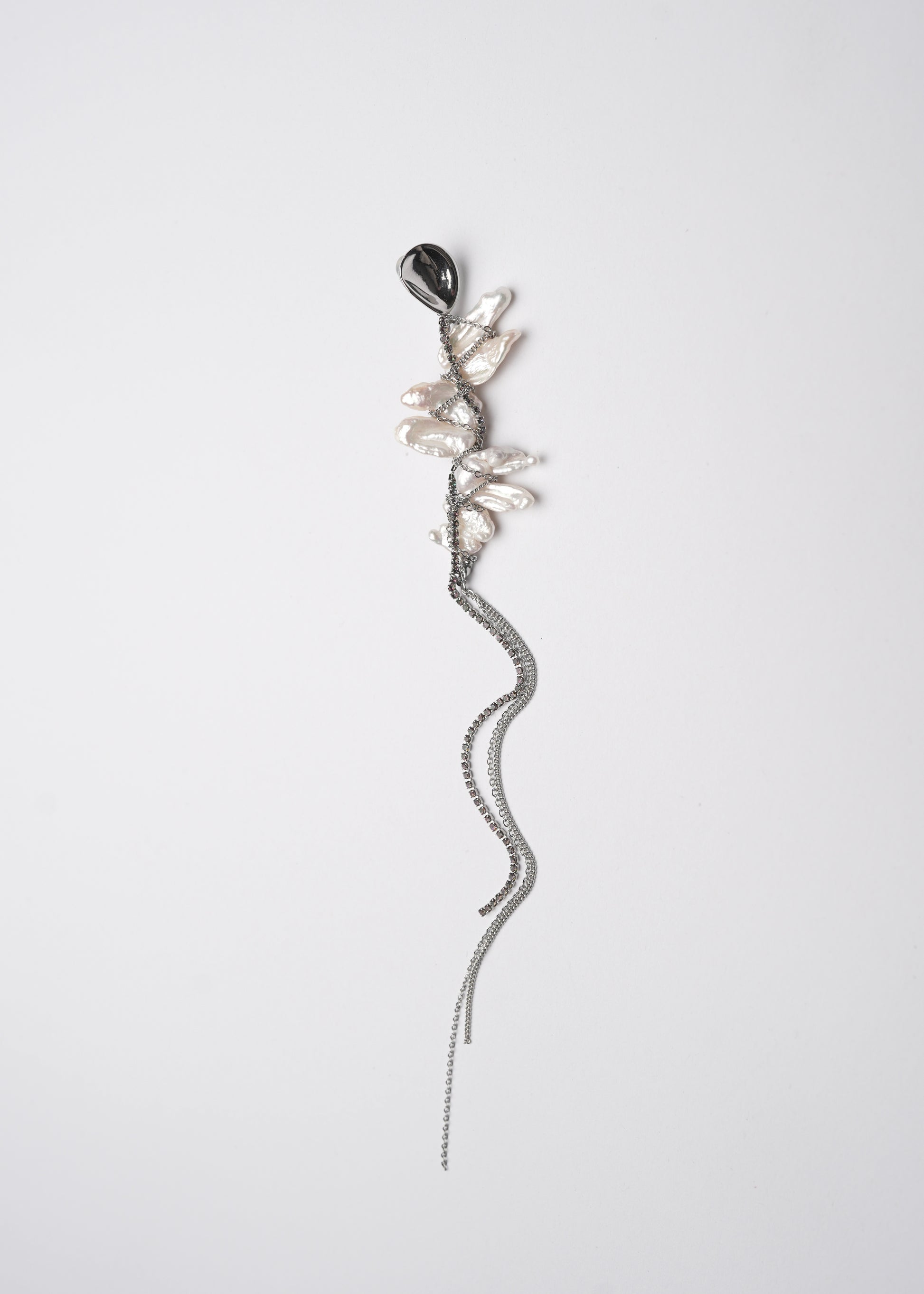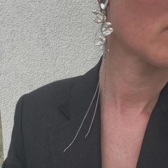 Materials: natural baroque pearl, rhinestone chains, stainless steel.