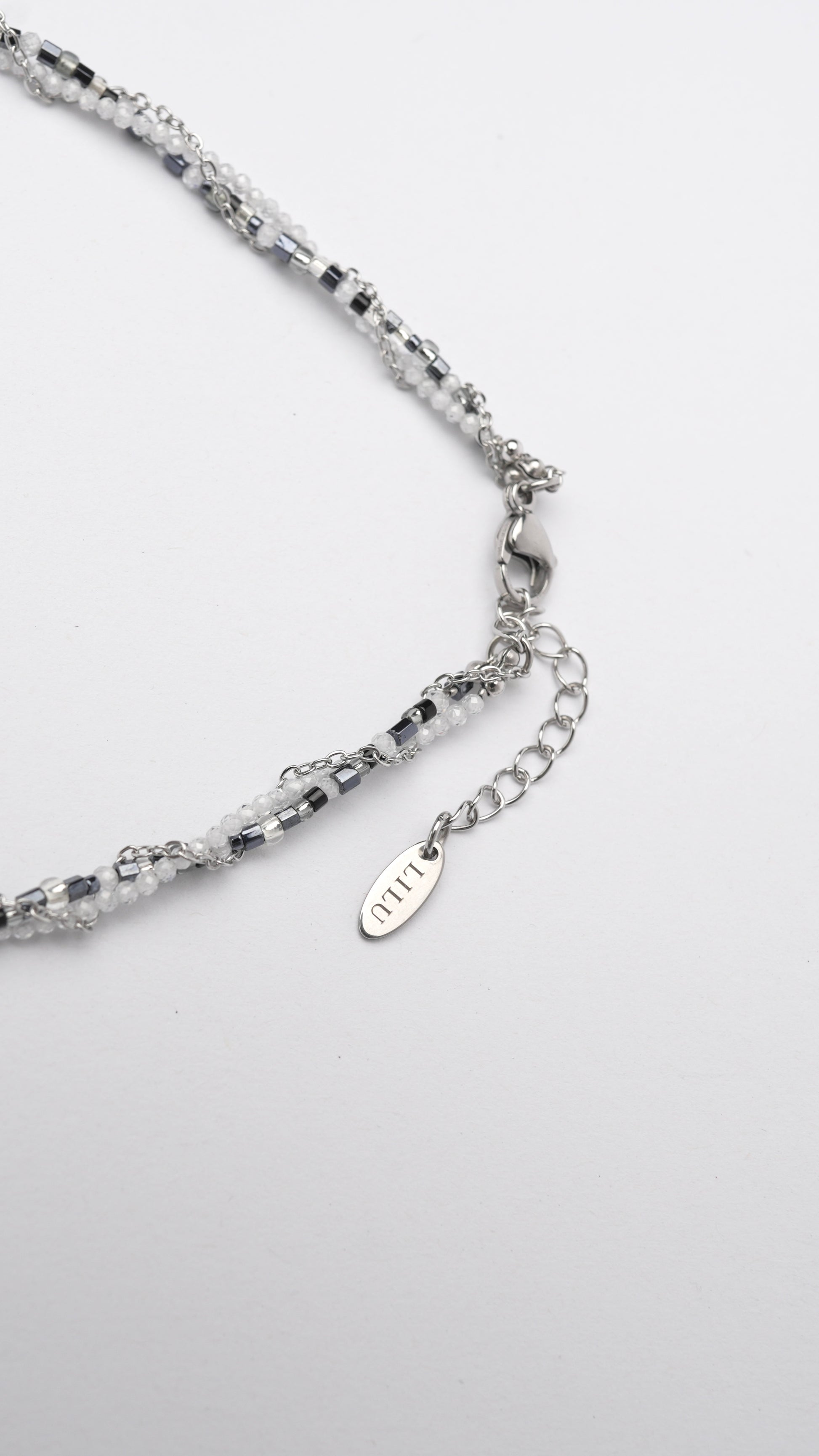 Materials: zircon beads, Japanese seed beads, jewelry stainless steel.