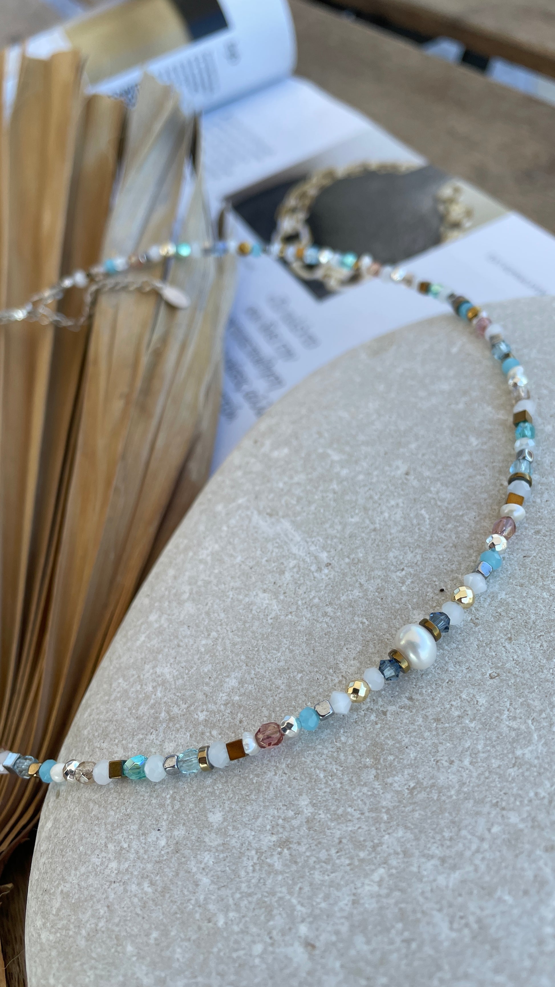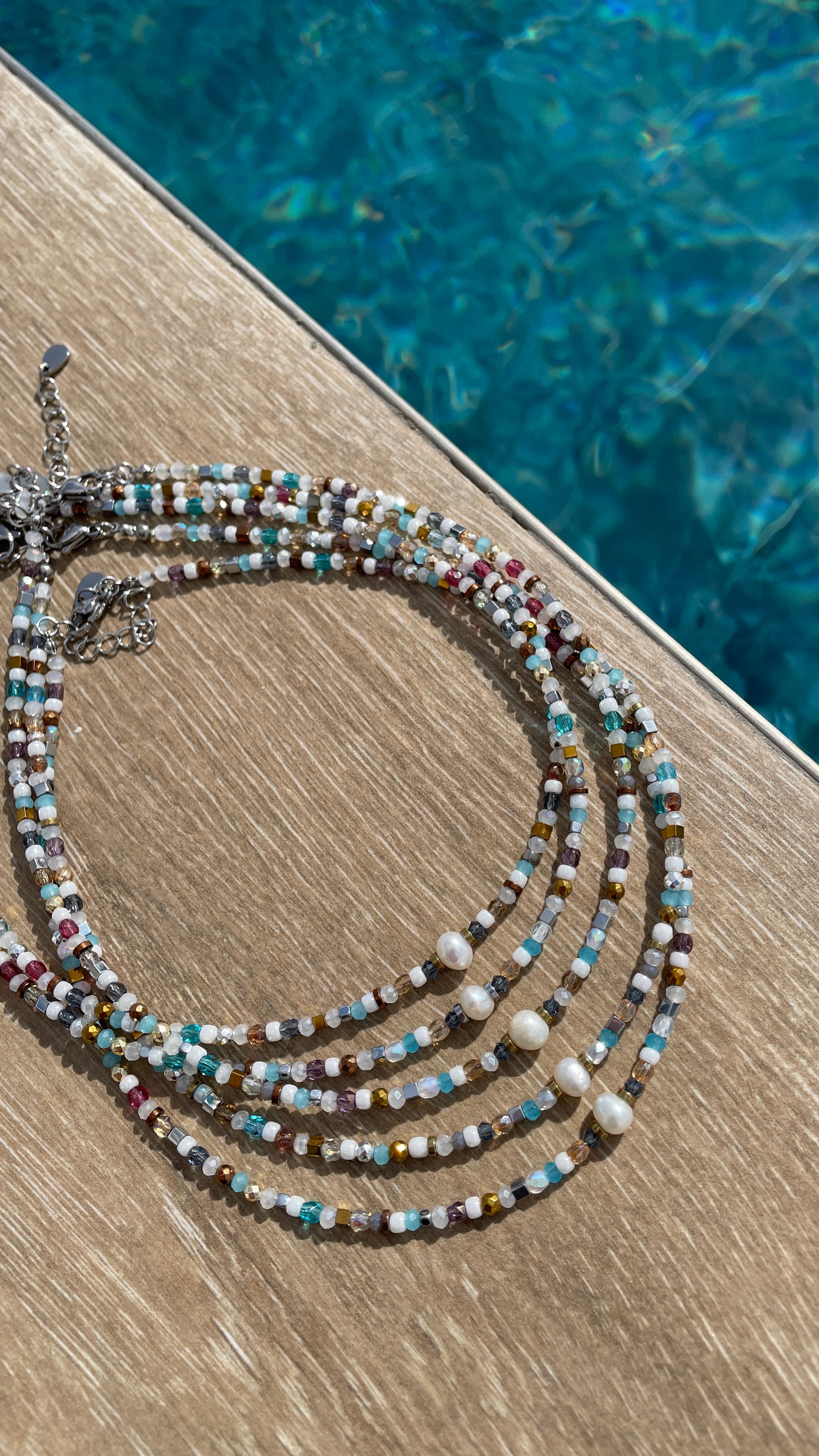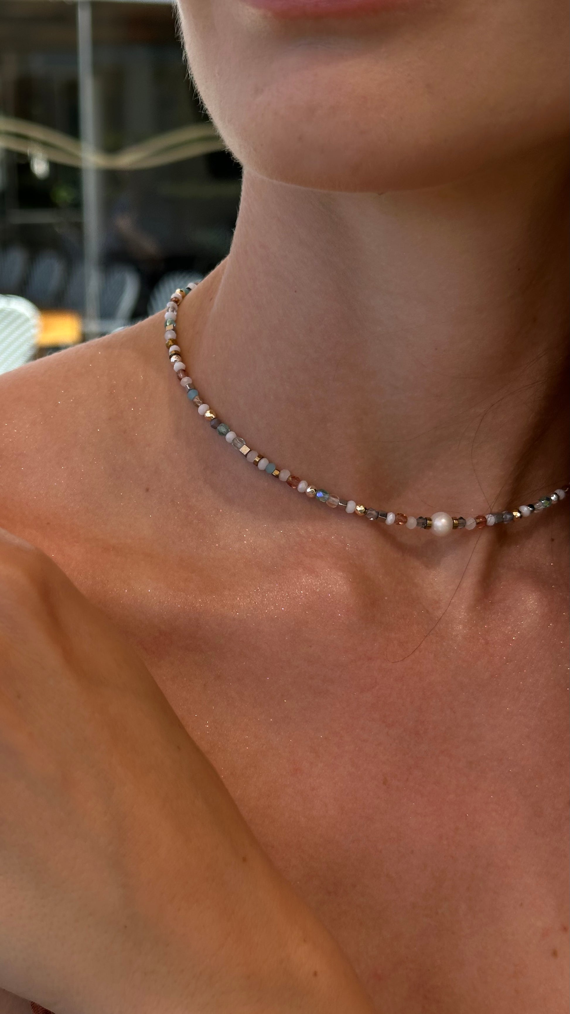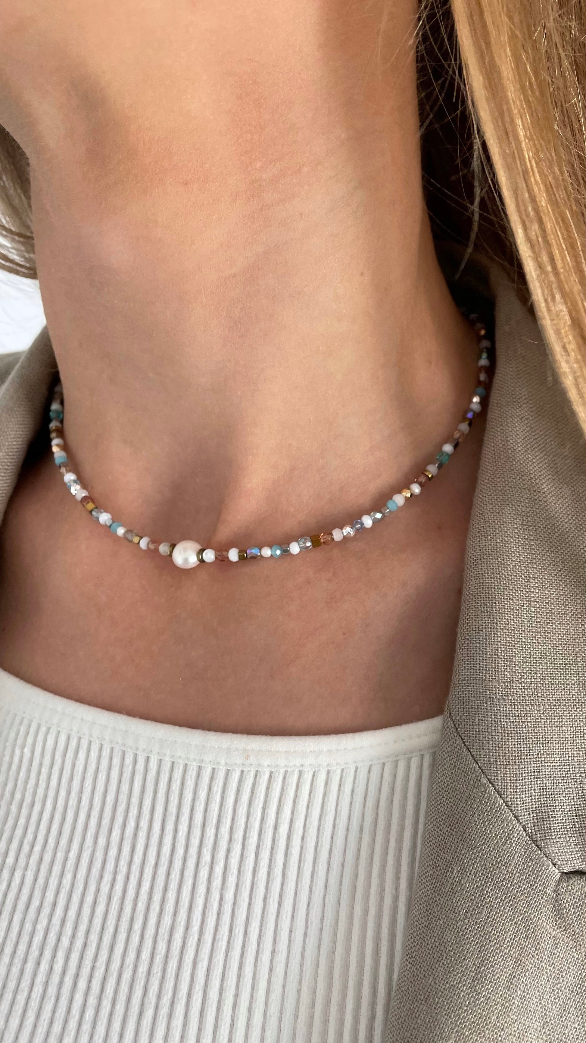 Inspired by the Mediterranean Sea, the Santorini choker captures the light, carefree mood of a seaside getaway.